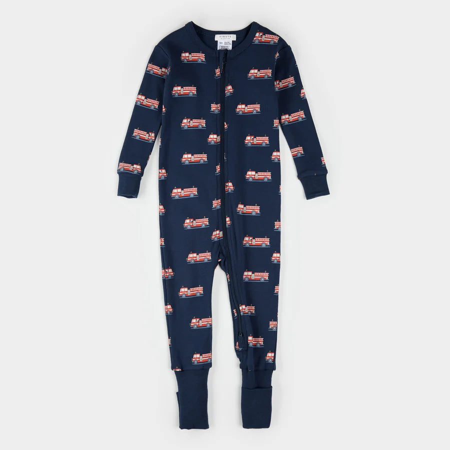 Petit Lem - Pyjamas marine à imprimé de camion de pompiers