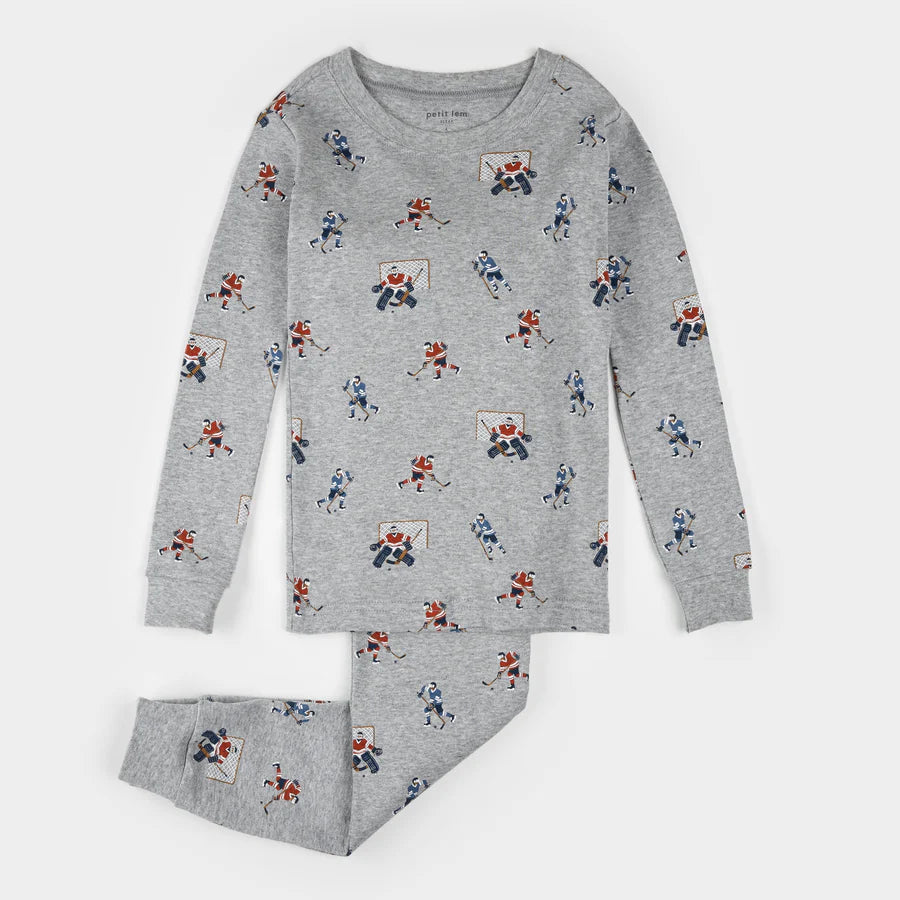 Petit Lem - Pyjamas 2 pc gris joueurs de hockey